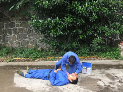 演练前,受公司总经理徐志峰委托,祝烨然副总经理作动员讲话,肯定了演习的及时性和必要性,同时对铁心桥派出所陆所长和杨警官的到来表示热烈欢迎。杨警官详细地给大家讲解了灭火器的使用方法,如何沉着冷静的应对各种突发事件。随后对预先点起的火盆进行了实战演练,员工们动作娴熟,一气呵成地扑灭了大火。防中毒演练时,场景逼真,救援人员在接到指令时,以最快的速度将伤者抬至室外上风处,紧急进行了胸压、人工呼吸等急救措施。急救演练过程快而不乱,虽是演练仍如实战。