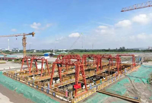 2021年7月21日,公司参与建设的南京仙新路过江通道跨江大桥北锚碇沉井第三次下沉精准到位,至此,项目北锚碇沉井完成全部下沉施工任务。 仙新路过江通道为主跨1760米悬索桥,一跨过江,是目前同类型桥梁中国内第一、世界第三跨度。仙新路过江通道北锚碇为陆地超大规模沉井施工,沉井尺寸达70m×50m×50m,共20个井孔,从空中看仿佛一个“大蜂窝”。沉井施工浇筑9次混凝土,分3次下沉,最终下沉至地面以下50m。沉井浇筑采用我公司新型超长保坍型HLC-IX聚羧酸系高性能减水剂,实现了高温环境混凝土2h坍落度损失小于20mm、优良的泵送性能以及初凝时间大于40h等浇筑技术要求。 北锚碇沉井下沉施工全部结束,即将转入封底作业。为保障下一阶段封底混凝土的顺利浇筑,公司将继续以优质的产品、高效的服务、及时的保供能力为工程提供强有力的支撑。