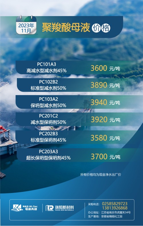 【聚羧酸系减水剂母液月度最新价格】丨2023年11月
