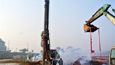 宁高城际轨道交通线路全长约52.39km。浇注C50箱梁时,因温度高达40℃,导致混凝土凝结时间小于3h。采用聚羧酸系保坍剂母液制备HLC-IX聚羧酸系高性能减水剂,通过在聚羧酸分子结构中引入酯基,在水泥水化的碱性环境作用下,缓慢水解释放出减水基团羧基,使水泥中早期快速水化进程被适当延迟,从而使混凝土在高温下初凝时间延长至7h~8h,实现了高温条件下的施工技术要求。